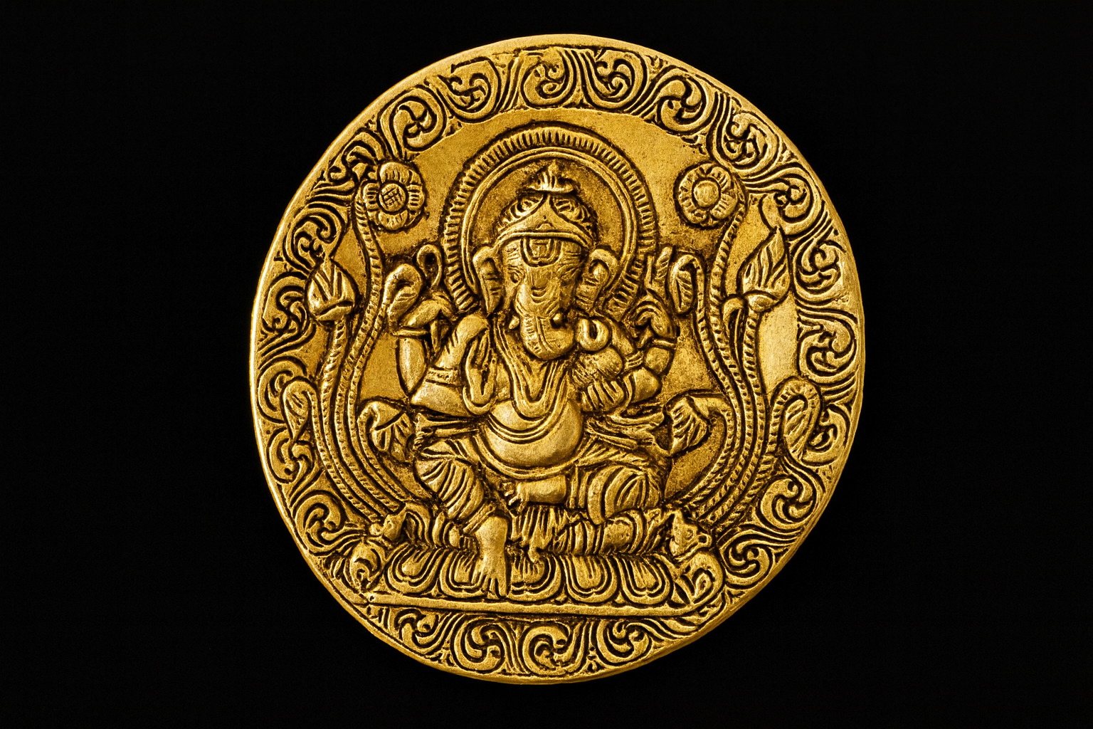 A finely sculpted brass wall plate featuring Lord Ganesha in serene relief, encircled by intricate ornamental patterns. Designed to invite wisdom, prosperity, and auspicious energy, this elegant wall accent is ideal for entryways, prayer spaces, or statement walls. Compact yet powerful in presence, it carries timeless spiritual grace and artistic refinement.